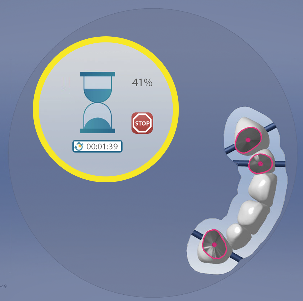 The strategy now offers the chance of automatically roughing cavities pockets as first operation in 2 steps denture creation process. By using a strategy code that automatically breaks the CNC in two different slots, the operator will just need to manually fill the cavities with the appropriate material and wait for the CNC automatic launch for quicker and more reliable results.